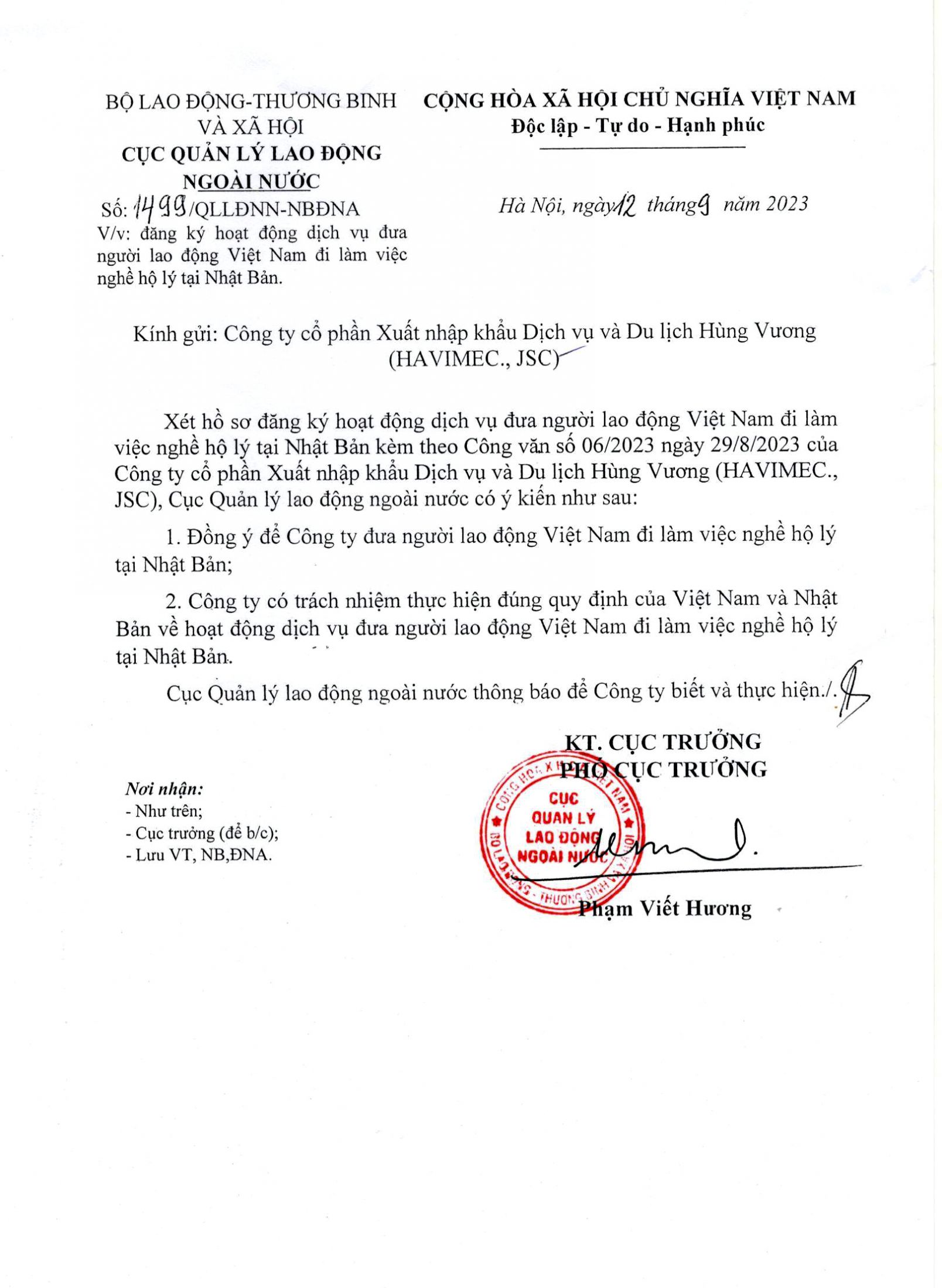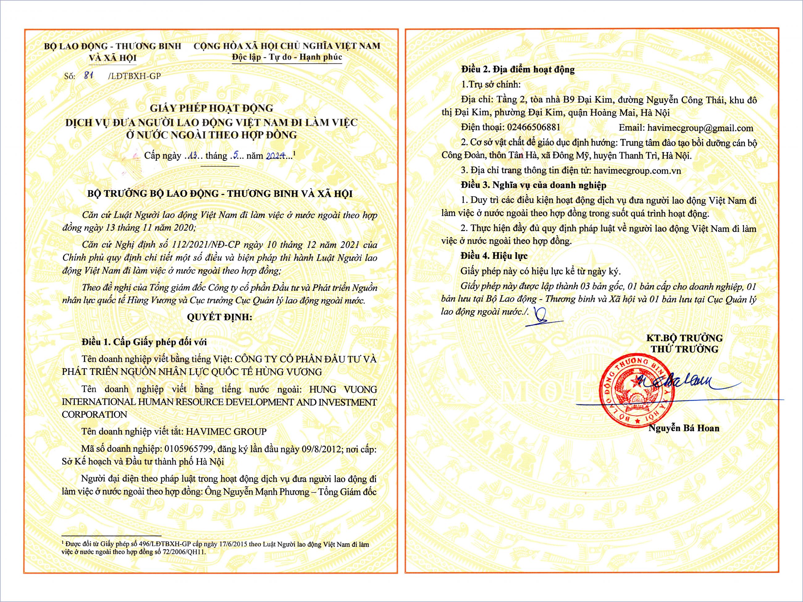 5. GIẤY PHÉP ĐƯA NGƯỜI LAO ĐỘNG ĐI LÀM VIỆC NGHỀ HỒ LÝ TẠI NHẬT BẢN