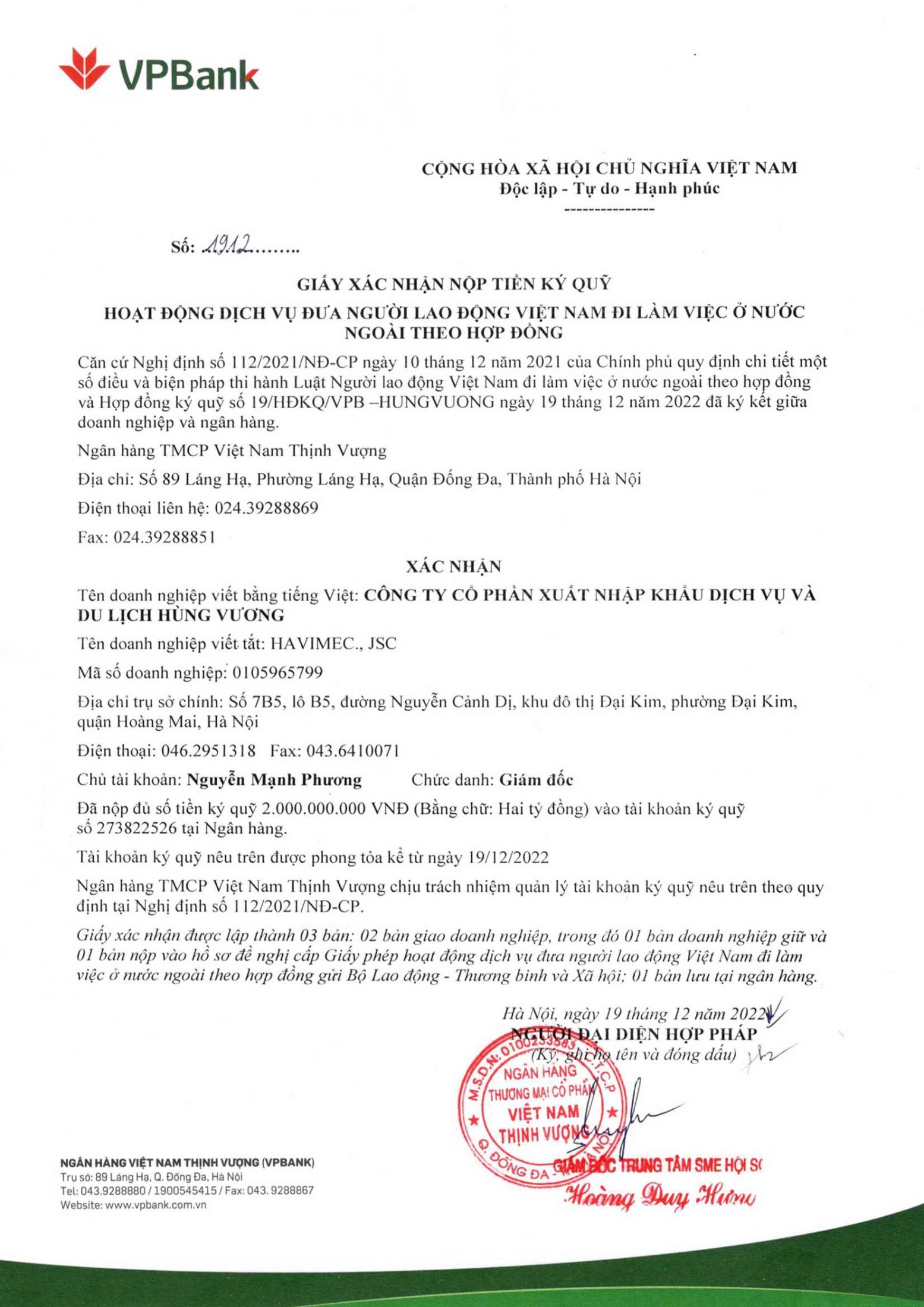 7. GIẤY XÁC NHẬN NỘP TIỀN KÝ QUỸ NGÂN HÀNG