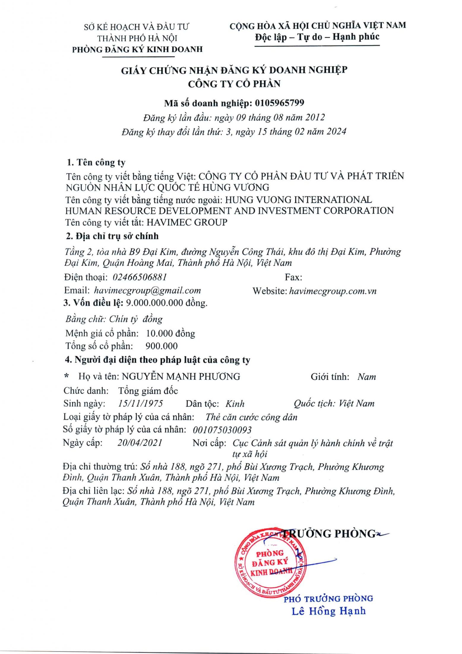 1. GIẤY CHỨNG NHẬN ĐĂNG KÍ DOANH NGHIỆP